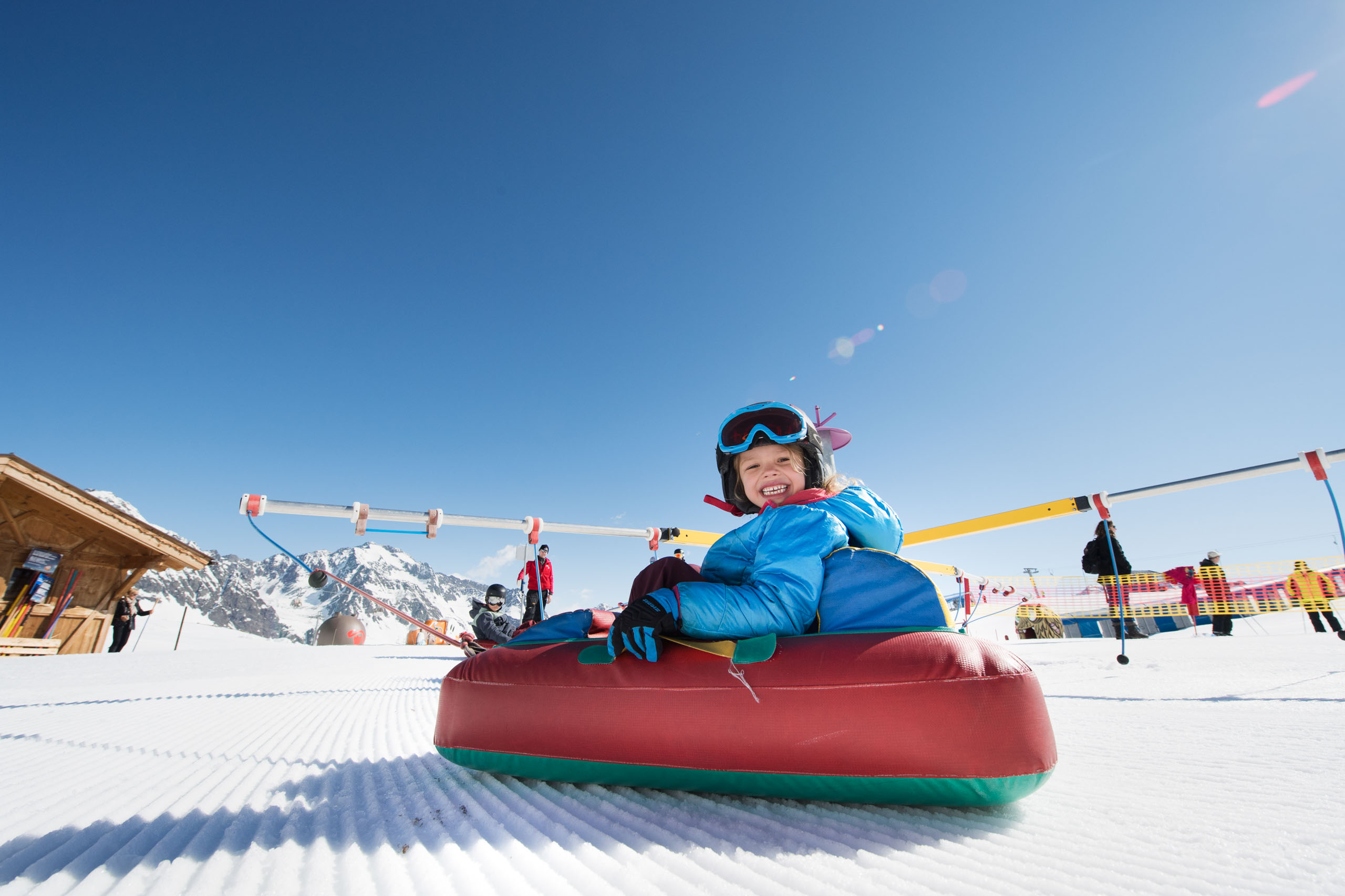 Kinderland: 3 Zauberteppiche, ein Skikarusell für Pausen und eine Aufwärmhütte mit WC BIG Family Kindercamp direkt am Stubaier Gletscher an der Bergstation Gamsgarten. Die Einteilung der Gruppen erfolgt am Sammelplatz.